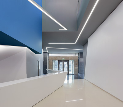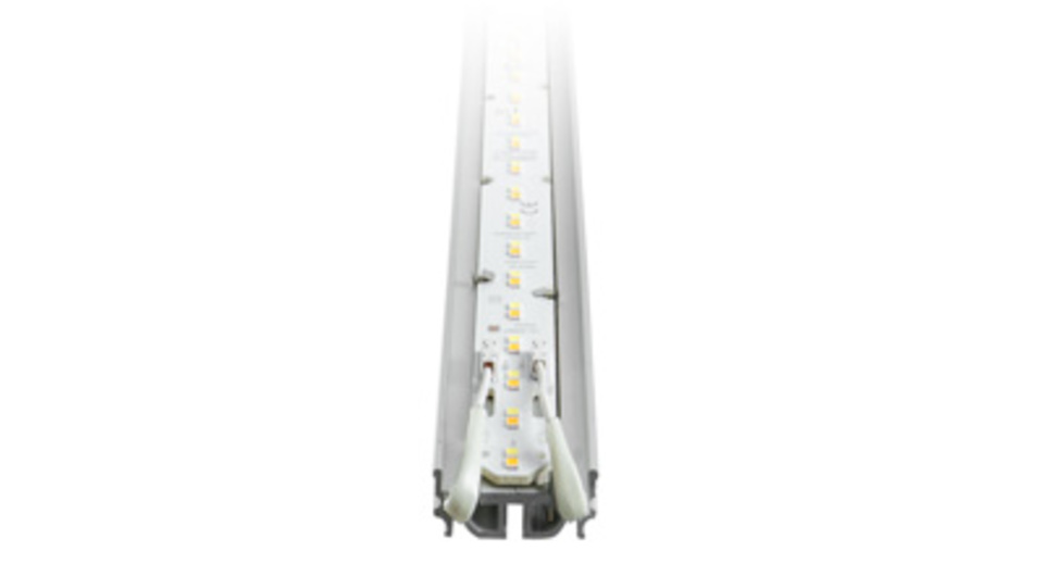 Das BIRO40 Lichtkanalsystem von Brumberg hat eine Profilbreite von 40 Millimetern. Die Leuchten lassen sich individuell nach Kundenwunsch konfigurieren. Das System besteht aus einem verwindungssteifen Aluminiumprofil und ist in drei Varianten verfügbar: als Einbau-, Anbau- oder Pendelleuchten. Die Pendelleuchte gibt es zusätzlich als Direkt-Indirekt-Variante.